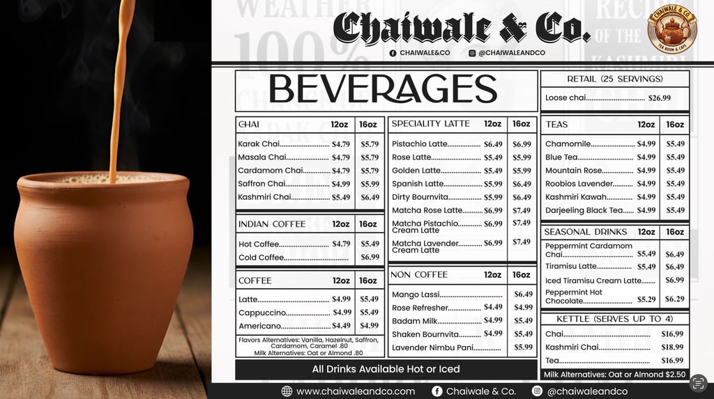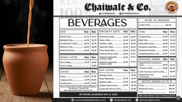 Chai shop specializing in nostalgic flavors and Indian fusion drinks and desserts.